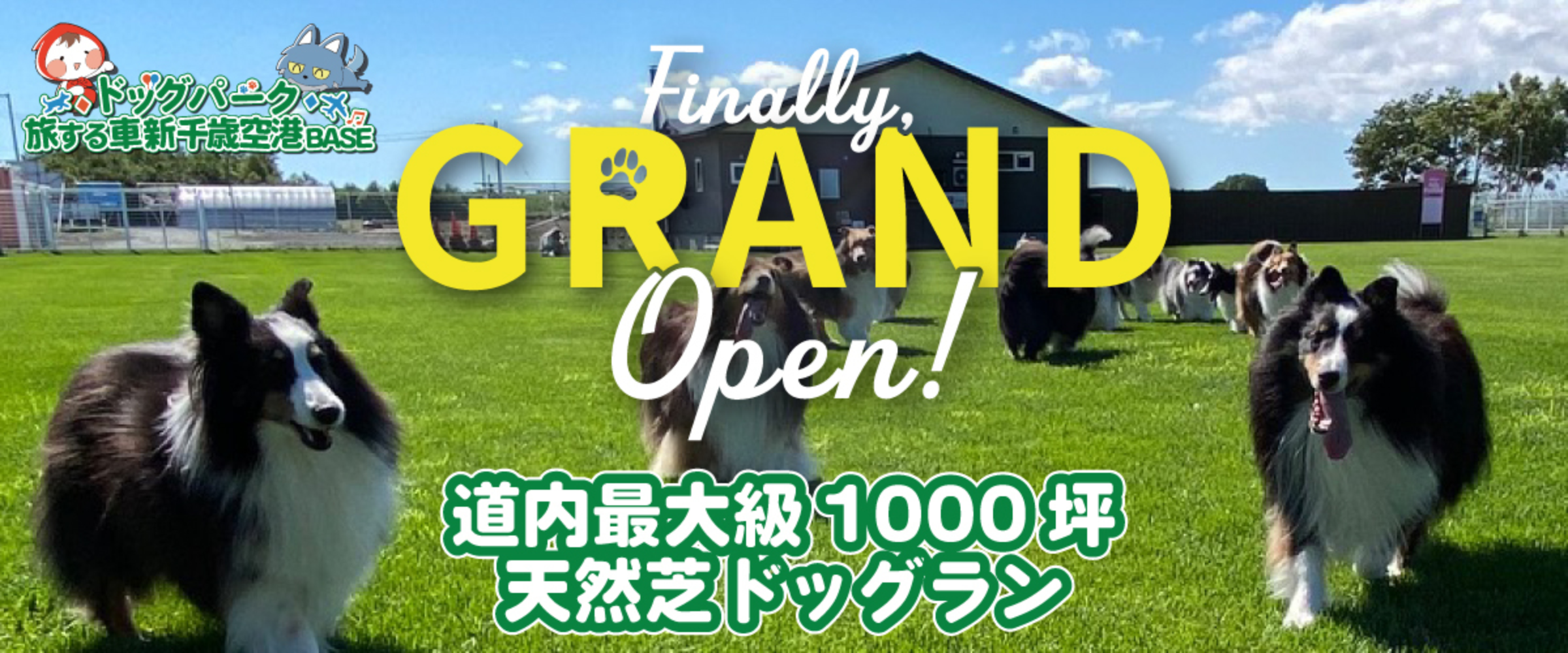 新千歳空港から車で5分の好立地に、北海道最大級のドッグランが新規オープン!約2,700㎡のメインパークをはじめ、サブパーク・プライベートエリアの3エリアを完備しています。
